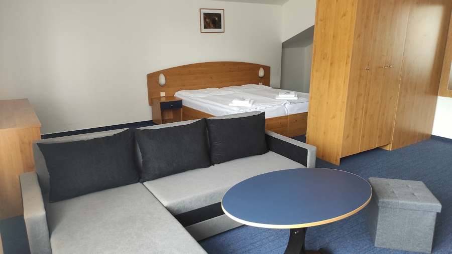 V pohodlne zariadenej a priestrannej rodinnej izbe sa nachádza manželská posteľ pre 2 osoby a rozťahovací gauč slúžiaci ako prístelka pre ďalšie 2 osoby. V ponuke izby s balkónom aj bez balkóna. Detská postieľka na vyžiadanie.